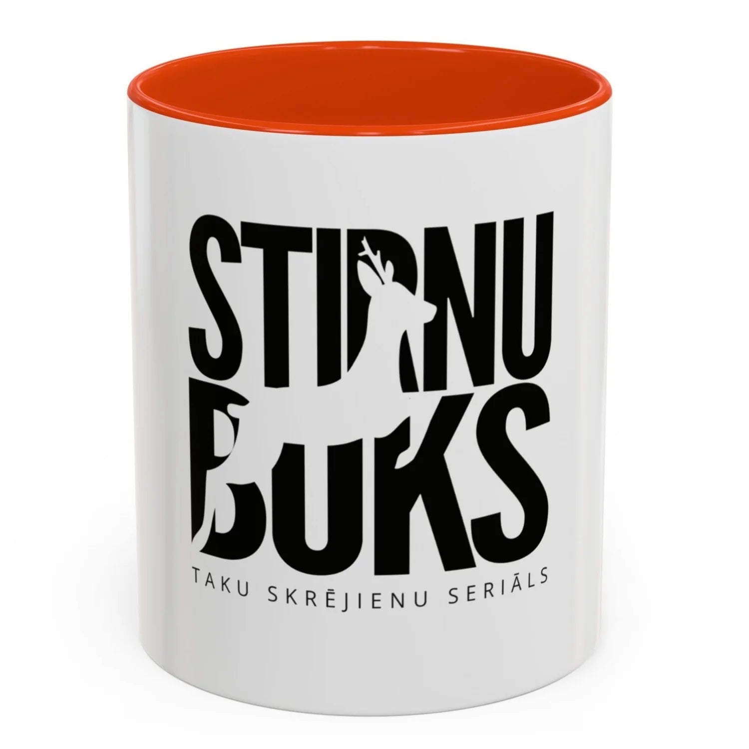 Stilīga un praktiska keramikas krūze ar STIRNU BUKS logo — lieliski piemērota tējas vai kafijas baudīšanai gan mājās, gan birojā.