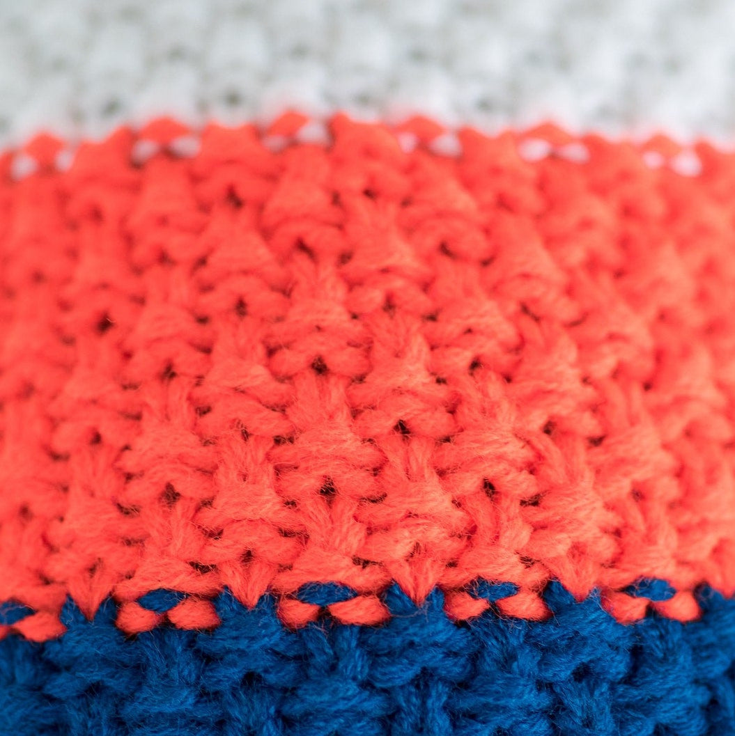 Knitted beanie POM blue/orange