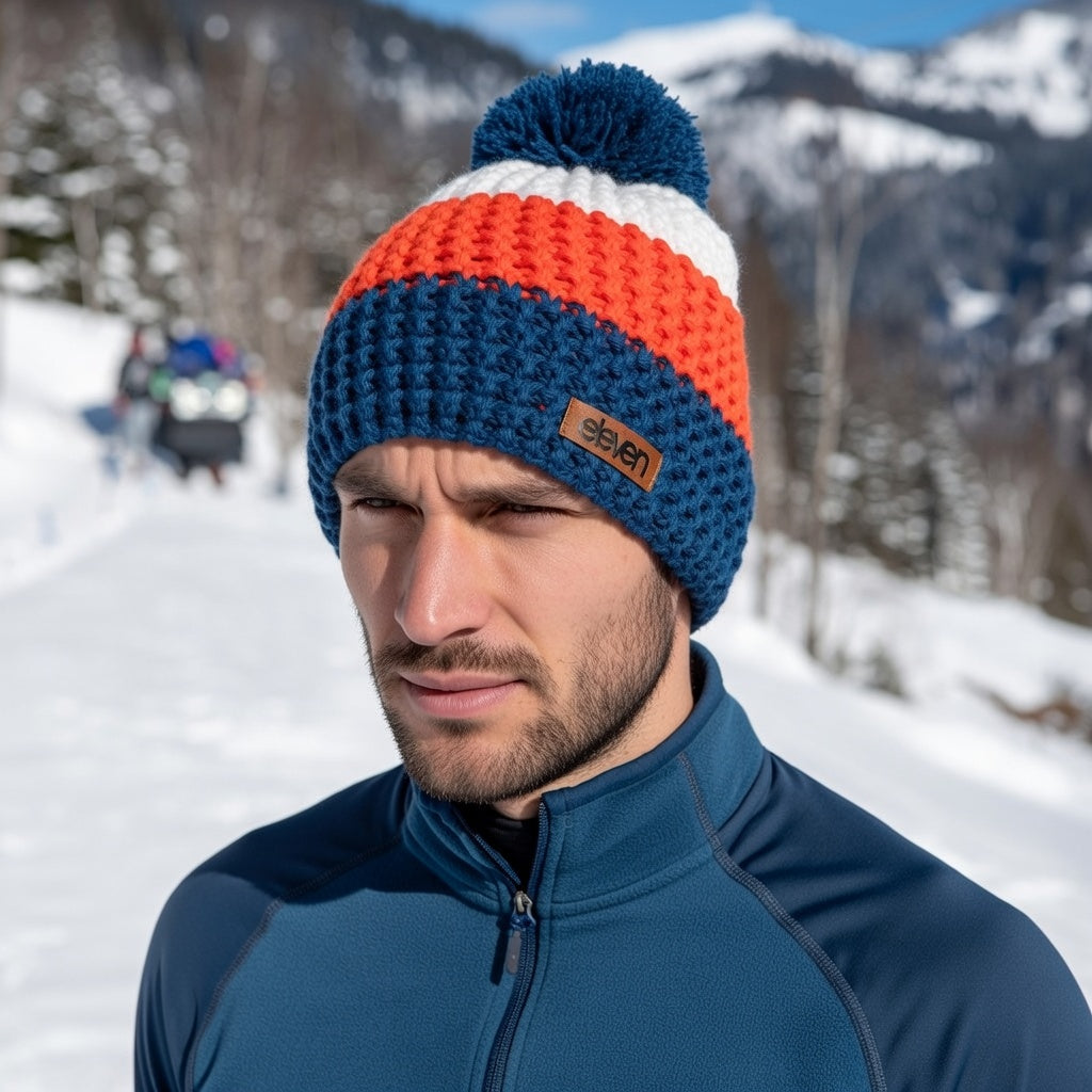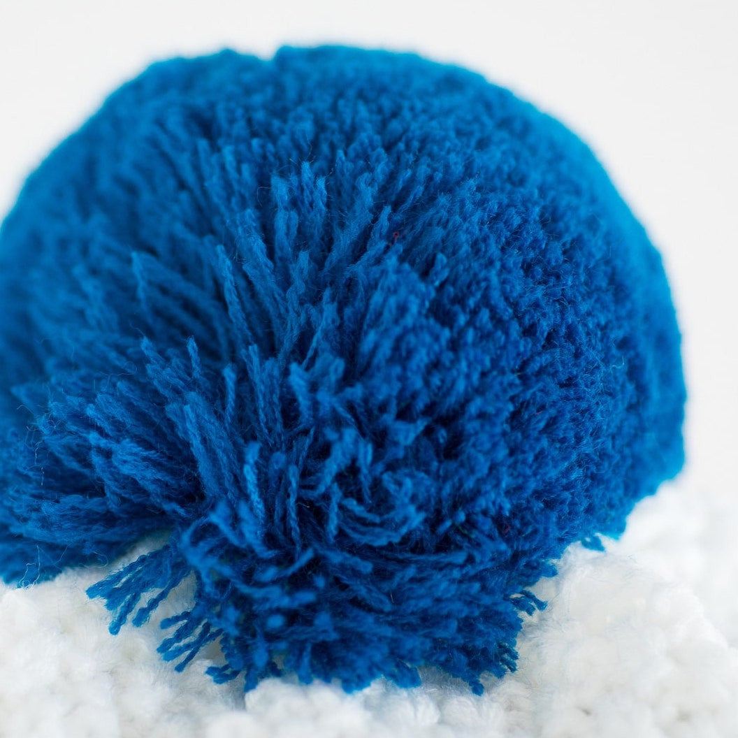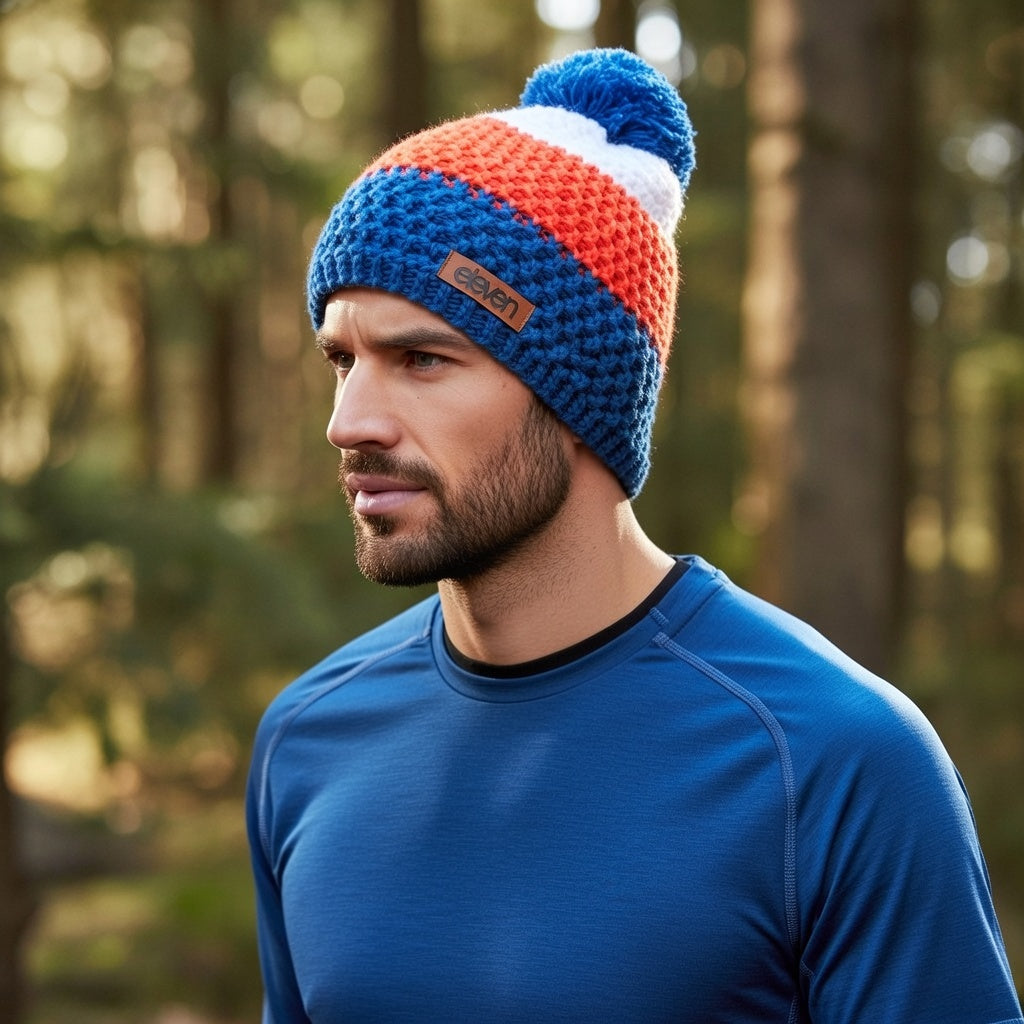 • The pom-pom knitted bump is light, soft as a cloud and always keeps its shape after wrinkling in the bag, in the cold of the day or in a daily run;