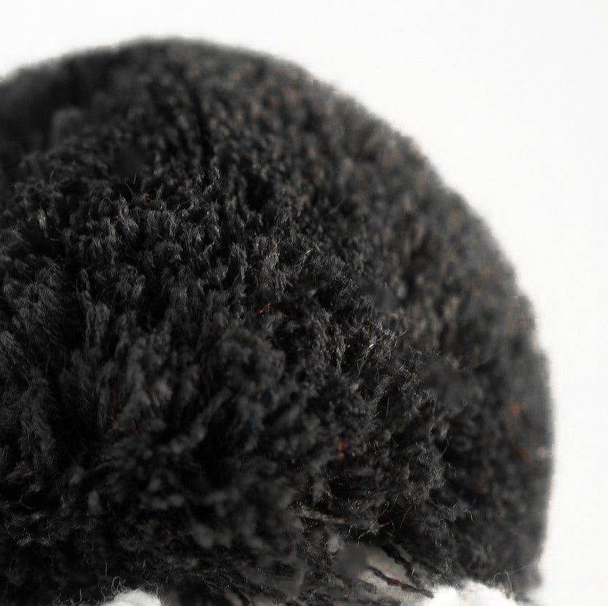 - The pom-pom knitted bump is light, soft as a cloud and always keeps its shape after wrinkling in the bag, in the cold of the day or in a daily run;